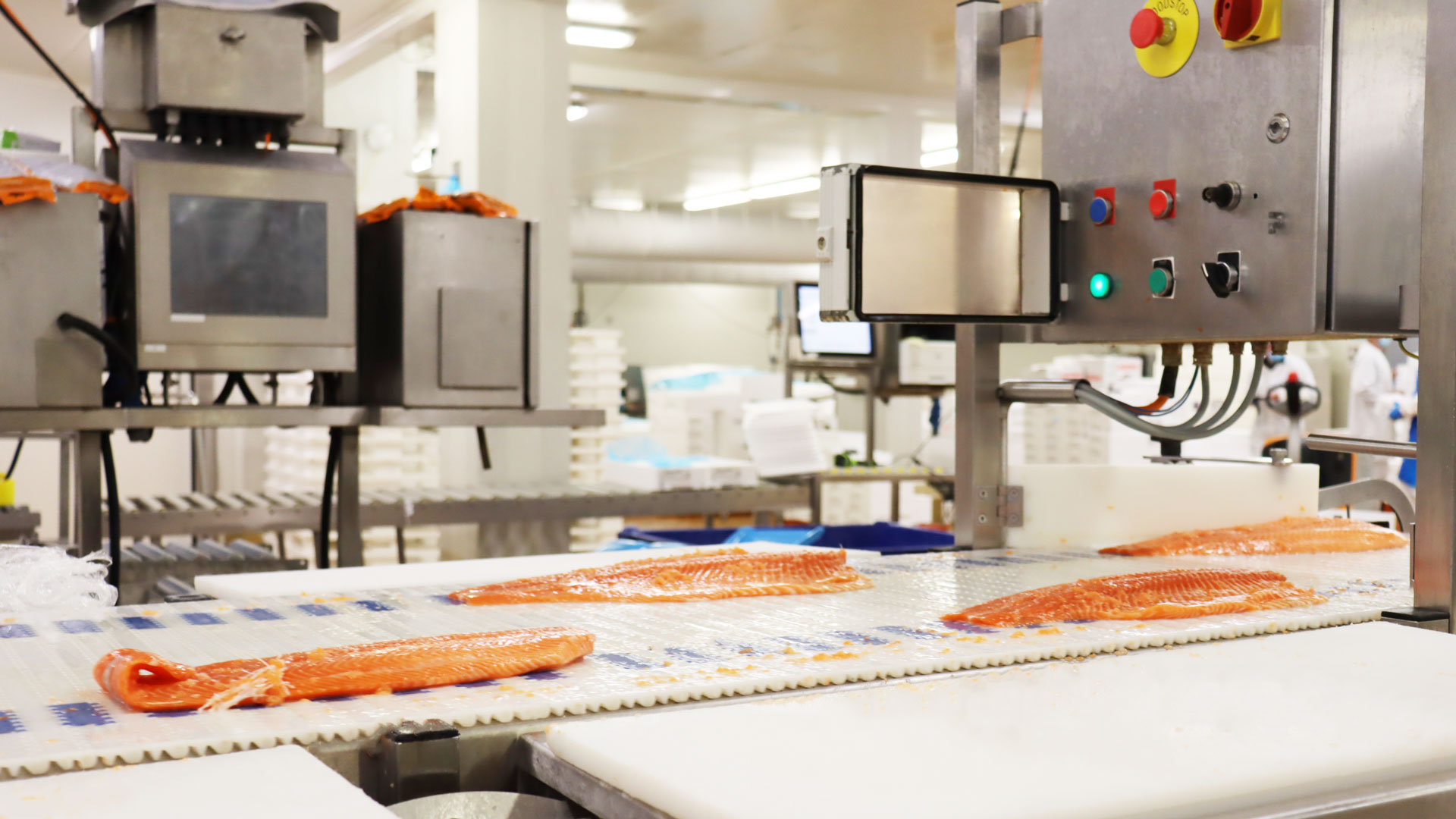 Cada día llegan a las instalaciones de la empresa varias toneladas de pescado, recién salido del mar y listo para ser procesado en una variedad de puestos especializados. Realizan desde el procesamiento básico a granel hasta servicios especiales (envasado en atmósfera modificada), pasando por la manipulación dedicada de marisco y pescado congelado: trabajar con pescado fresco implica muchas piezas en movimiento. El salmón, por ejemplo, es uno de los productos más populares y requiere varios pasos de procesamiento. Desde simplemente porcionarlo hasta filetearlo, cortarlo en lonchas o crear carpaccio o salmón picado. Cada paso lleva tiempo, y eso se acumula en términos de tiempo y coste.