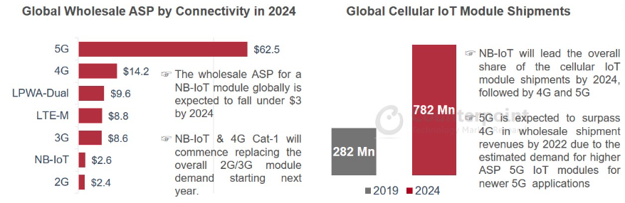 Vroeger was de mobiele netwerktechnologie doorgaans een van de duurste onderdelen van een tracker. Wat we nu zien is dat voor deze technologie, en met name voor NB-IOT, de prijzen aanzienlijk zijn gedaald. NB-IOT is een draadloze technologie met een laag vermogen op lange afstand die deel uitmaakt van de 4G- en 5G-standaard en specifiek is ontworpen voor energiezuinige langeafstandscommunicatie in IOT-sensoren. Een recente marktstudie door Counterpoint research, toont aan dat NB-IOT massaal wordt toegepast, waardoor de prijzen voor de hardware en voor de data-abonnementen dalen.